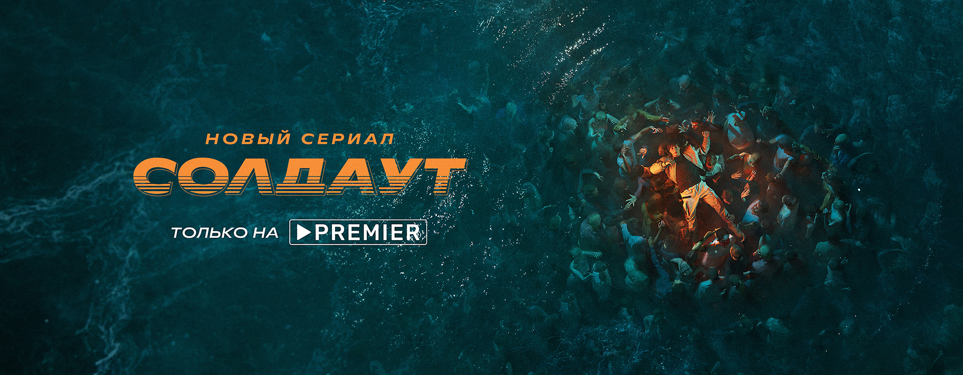 Креативная команда Premier хотела, чтобы на визуалах герои словно дрейфовали на поверхности бескрайнего океана, поддерживаемые толпой фанатов. Чтобы передать это ощущение, мы создали трёхмерную локацию, а Илья Нодия вместе с Magic Production сфотографировали персонажей и массовку. Соединив вместе фото и графику и расставив нужные акценты цветом и композицией, мы получили атмосферные изображения, приглашающие зрителя с головой погрузиться в историю «Солдаута».